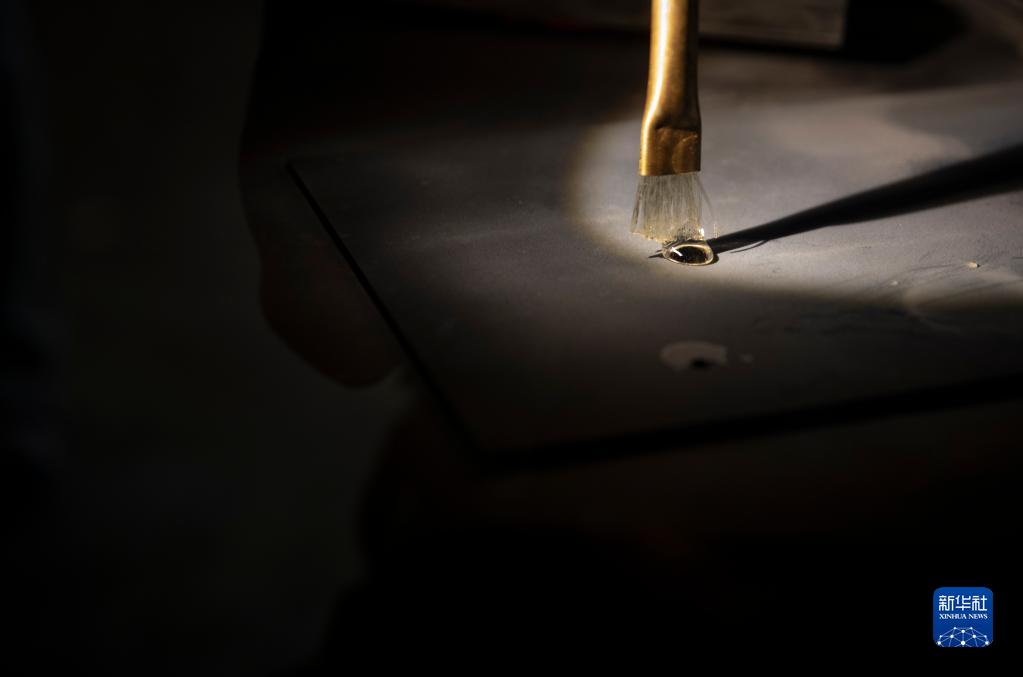 這是5月16日在以色列拉馬特甘巴爾伊蘭大學(xué)的費特納米科學(xué)與藝術(shù)博物館拍攝的裝置藝術(shù)作品。該作品呈現了納米超疏水材料的特性。