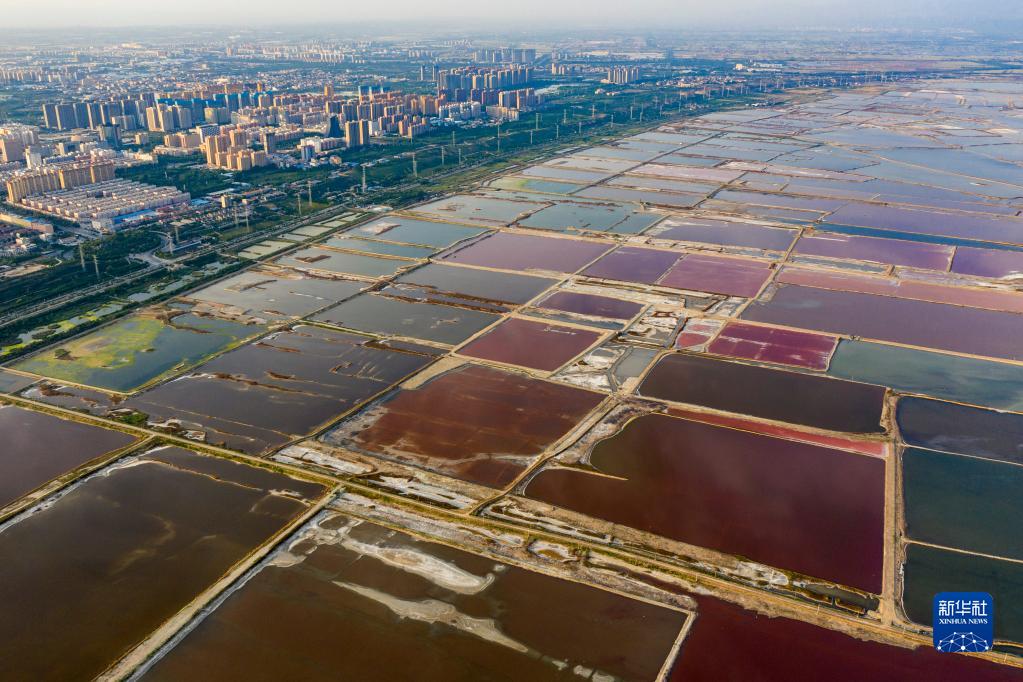 這是5月16日拍攝的運城鹽湖一景(無(wú)人機照片)。
