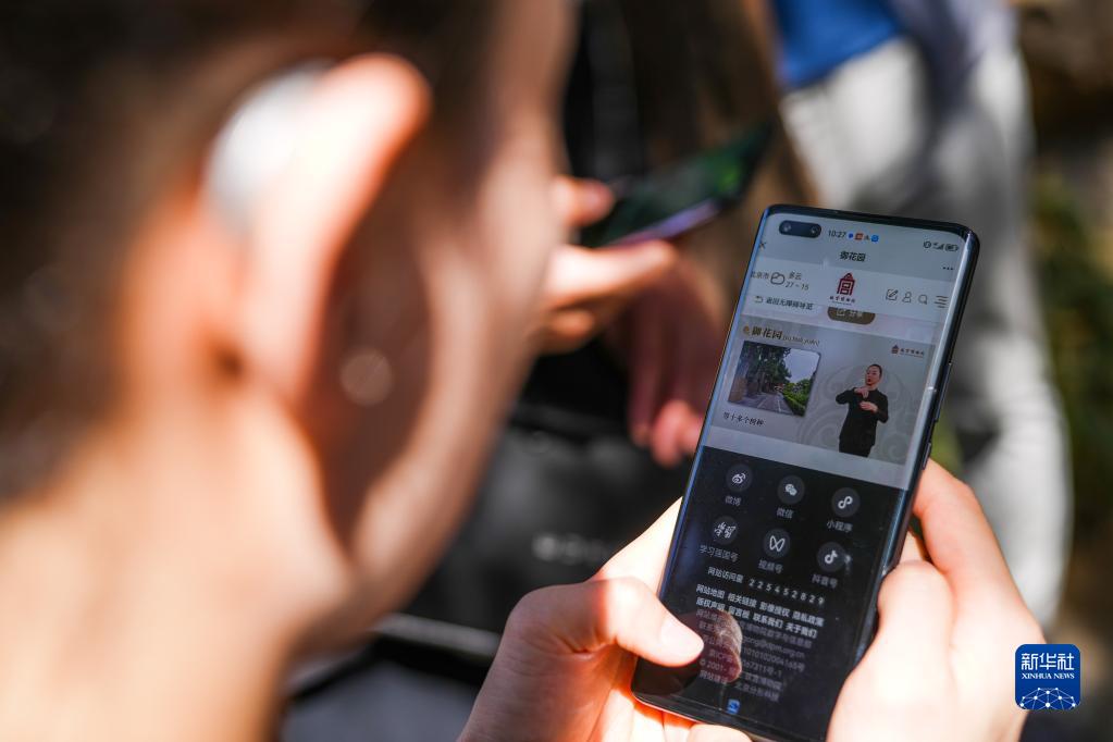 5月18日,一名聽(tīng)障人士在觀(guān)看手語(yǔ)講解視頻。
