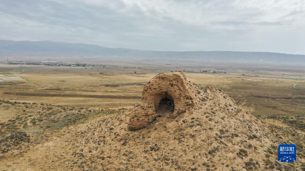 這是5月16日在甘肅省張掖市山丹縣拍攝的金山子烽火臺(無(wú)人機照片)。