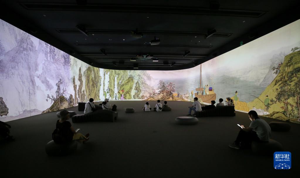 5月18日,游客在韓國首爾國立中央博物館觀(guān)看數字沉浸式影像。