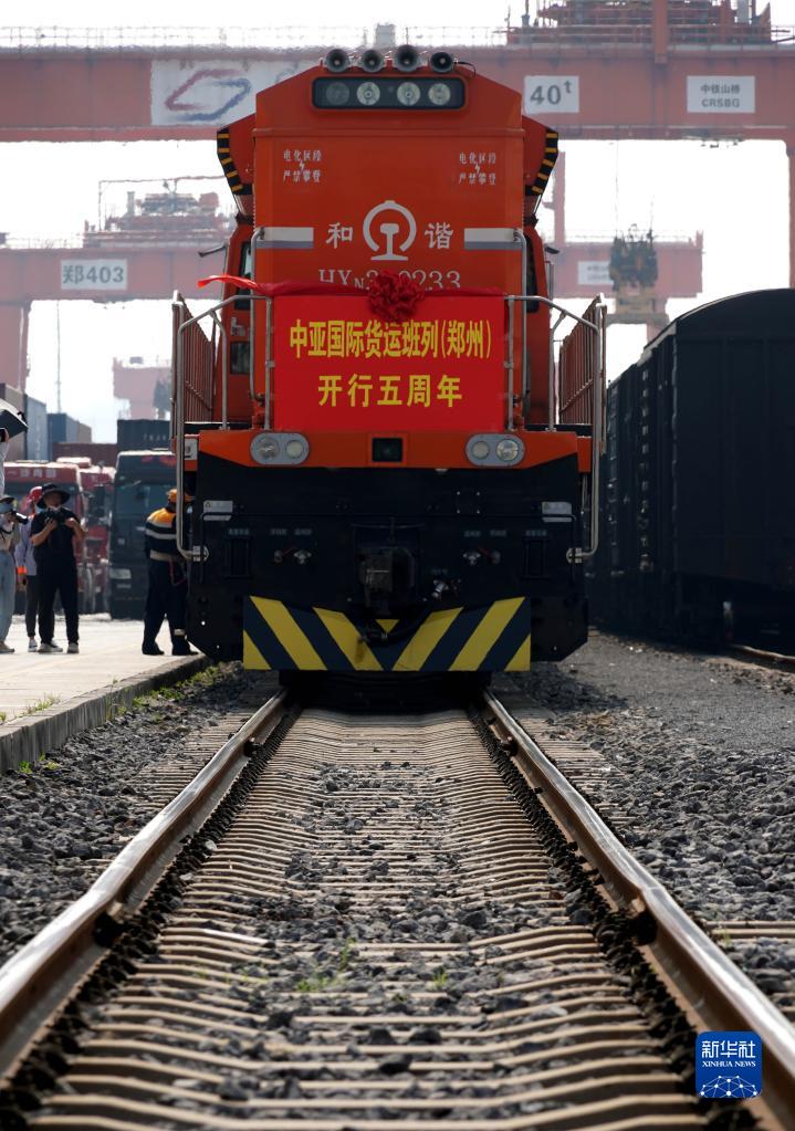 當日,X9021次中亞班列(鄭州)滿(mǎn)載56個(gè)集裝箱約1100噸貨物從中國鐵路鄭州局集團有限公司圃田車(chē)站駛出,途經(jīng)霍爾果斯邊境口岸出境,駛向烏茲別克斯坦首都塔什干。
