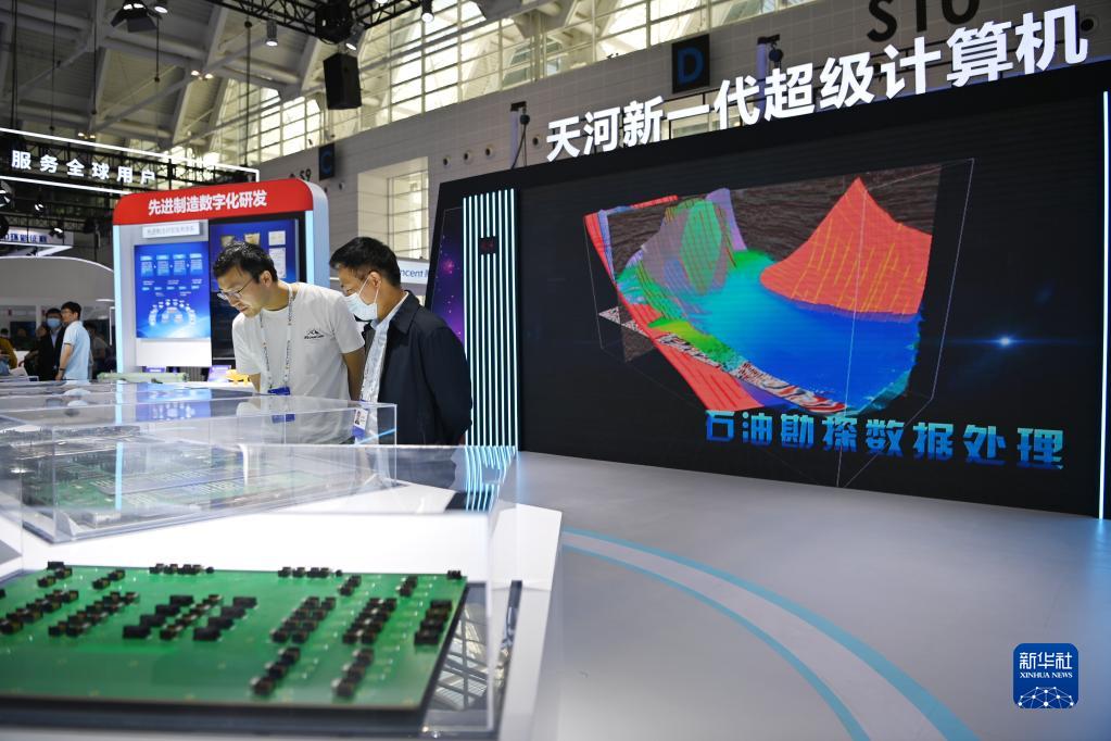 5月18日,觀(guān)眾在第七屆世界智能大會(huì )智能科技展上參觀(guān)國家超算天津中心展區。