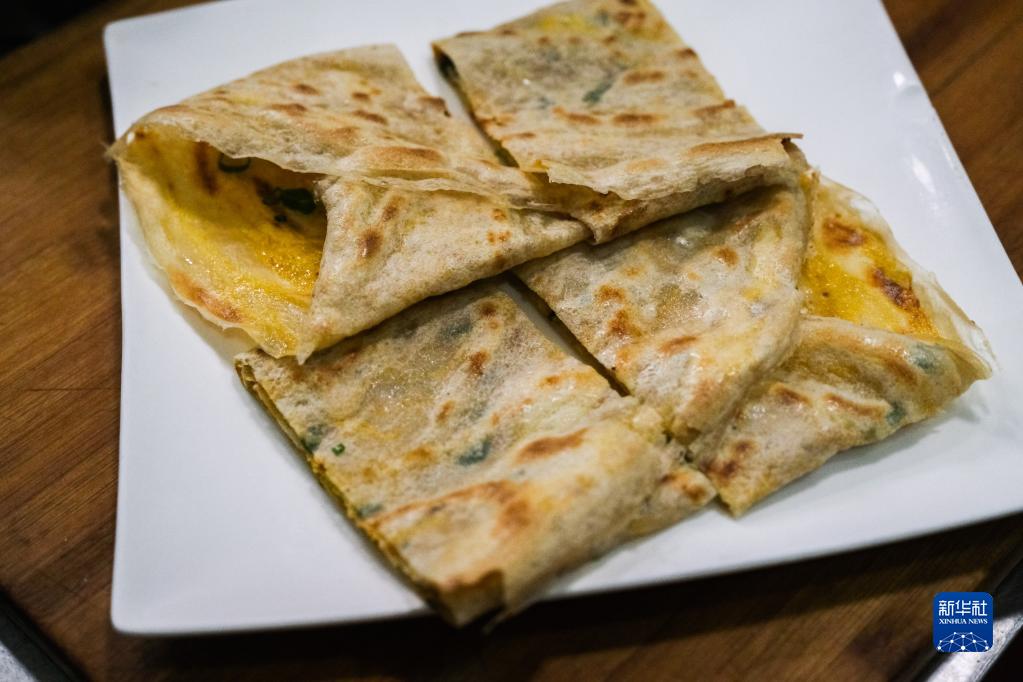 在天臺山游客中心拍攝的當地特色美食“糊拉汰”(5月17日攝)。