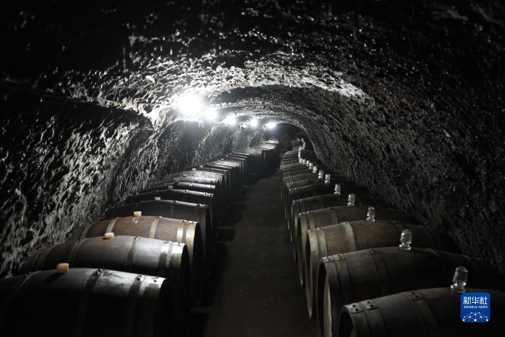 這是5月11日在匈牙利托卡伊拍攝的鮑比茨酒莊的酒窖內景。