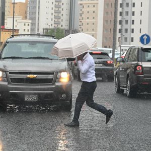 5月18日,人們在科威特首都科威特城冒雨出行。新華社發(fā)(阿薩德攝)