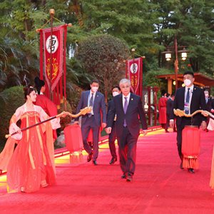 5月18日晚,出席中國-中亞峰會(huì )的中亞國家元首夫婦陸續抵達陜西省西安市大唐芙蓉園,參加在這里舉行的歡迎儀式。這是哈薩克斯坦總統托卡耶夫抵達。新華社記者 徐子鑒 攝