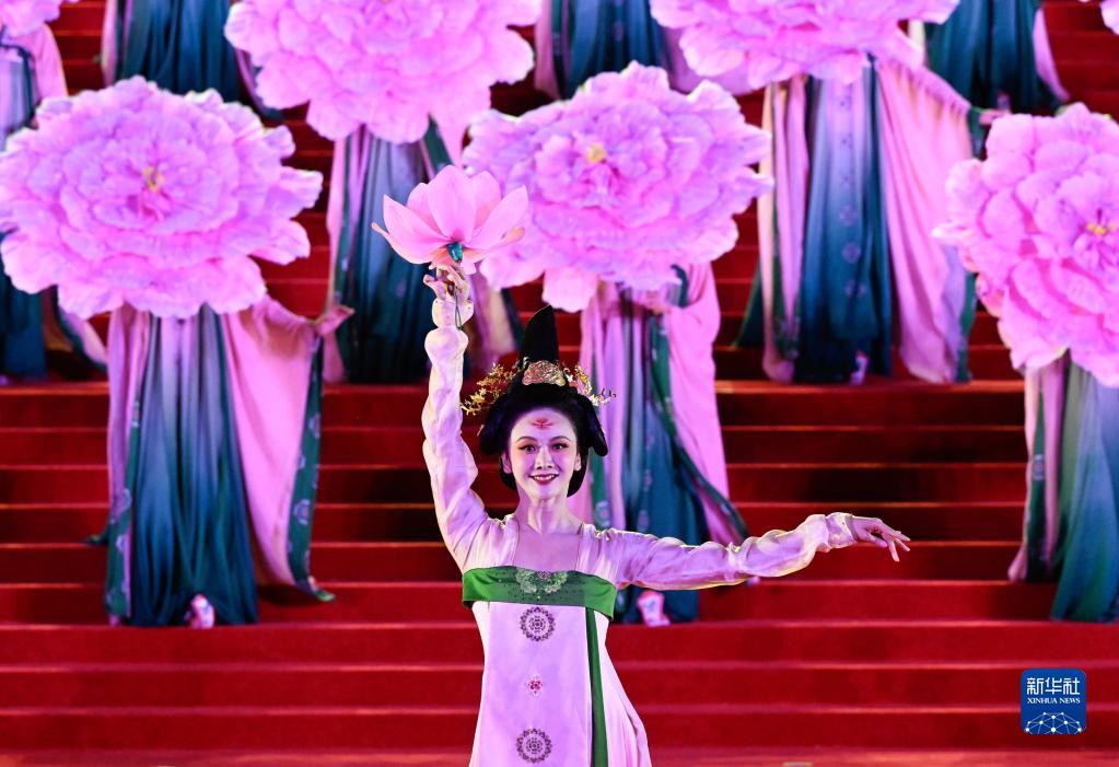 5月18日晚,出席中國-中亞峰會(huì )的中亞國家元首夫婦陸續抵達陜西省西安市大唐芙蓉園,參加在這里舉行的歡迎儀式。這是演員在歡迎儀式上表演。新華社記者 申宏 攝