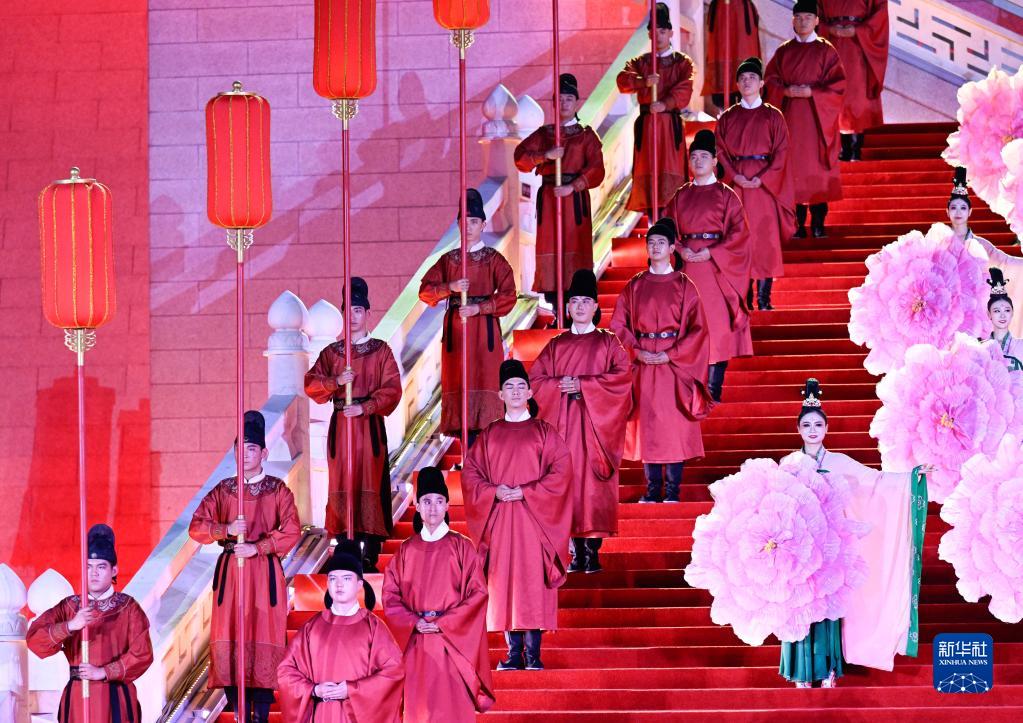 5月18日晚,出席中國-中亞峰會(huì )的中亞國家元首夫婦陸續抵達陜西省西安市大唐芙蓉園,參加在這里舉行的歡迎儀式。這是演員在歡迎儀式上表演。新華社記者 申宏 攝