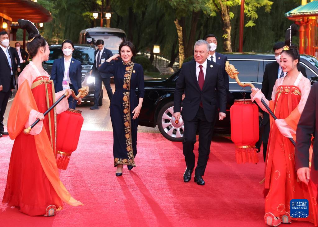 5月18日晚,出席中國-中亞峰會(huì )的中亞國家元首夫婦陸續抵達陜西省西安市大唐芙蓉園,參加在這里舉行的歡迎儀式。這是烏茲別克斯坦總統米爾濟約耶夫和夫人米爾濟約耶娃抵達。新華社記者 徐子鑒 攝