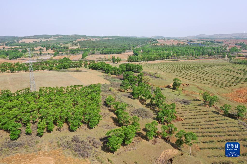 山西省右玉縣新城鎮田園景色(5月19日攝,無(wú)人機照片)。