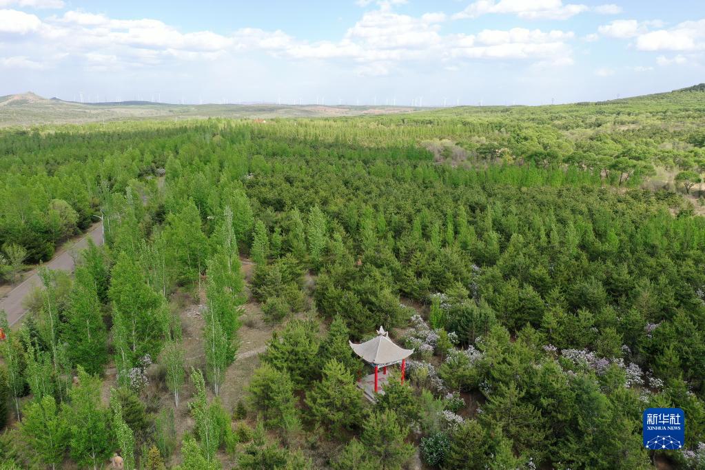 山西省右玉縣南山森林公園一角(5月18日攝,無(wú)人機照片)。