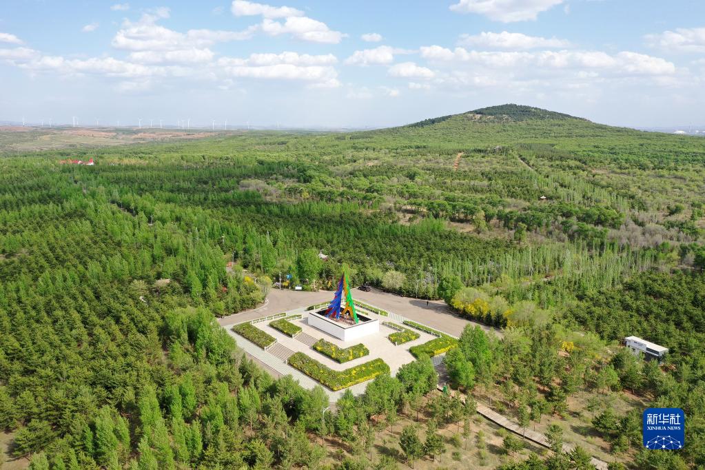 山西省右玉縣南山森林公園一角(5月18日攝,無(wú)人機照片)。