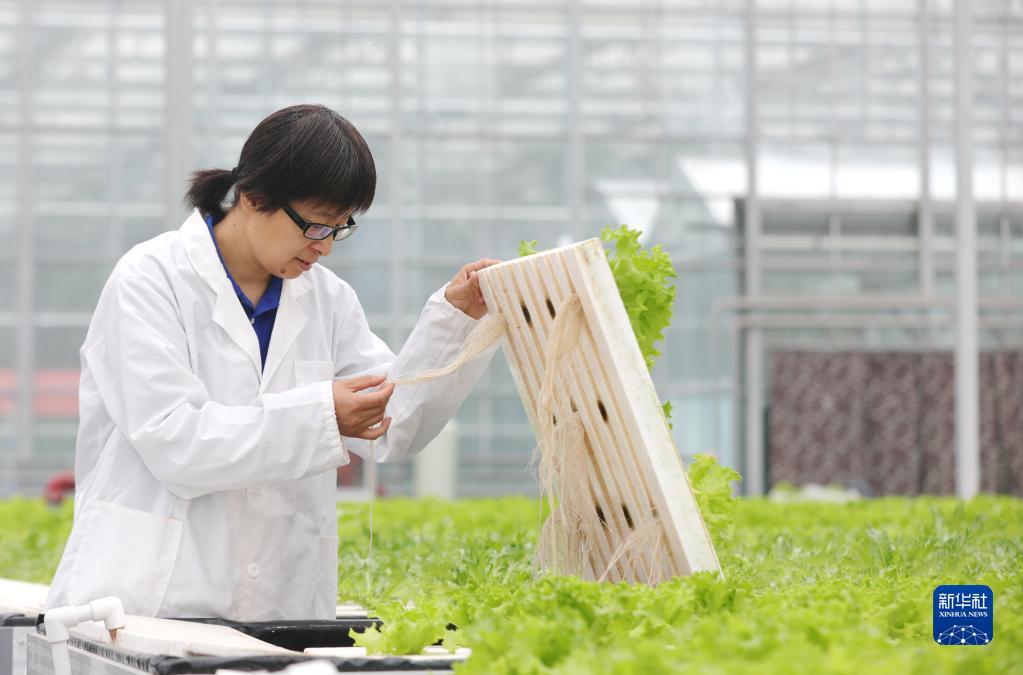 5月20日,河北省保定市徐水區一家現代農業(yè)示范園區的工作人員在智能溫室內查看水培蔬菜生長(cháng)情況。