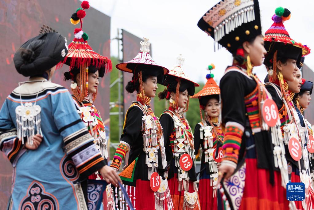 5月20日,彝族姑娘展示傳統服飾。