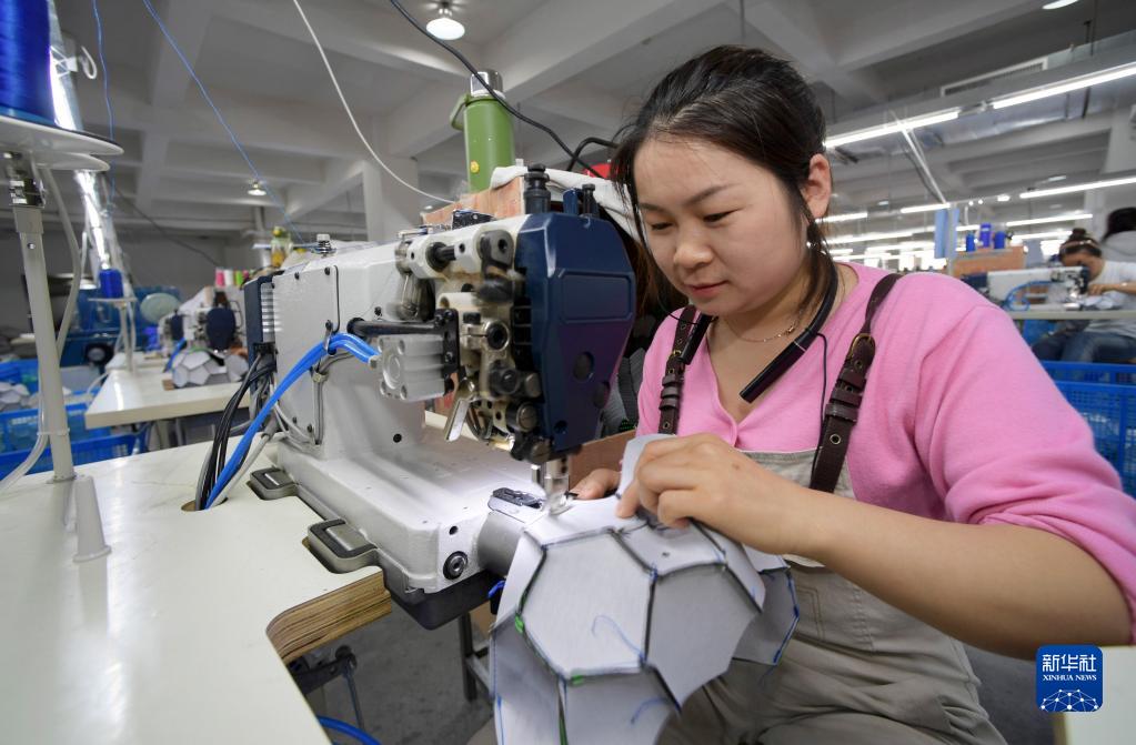 5月20日,工人在貴州省黔東南苗族侗族自治州施秉縣桃子灣工業(yè)園區一家企業(yè)生產(chǎn)球類(lèi)產(chǎn)品。該企業(yè)球類(lèi)產(chǎn)品全部銷(xiāo)往南非、巴西、墨西哥、哥倫比亞等國,帶動(dòng)當地300余名村民在家門(mén)口就業(yè)增收。