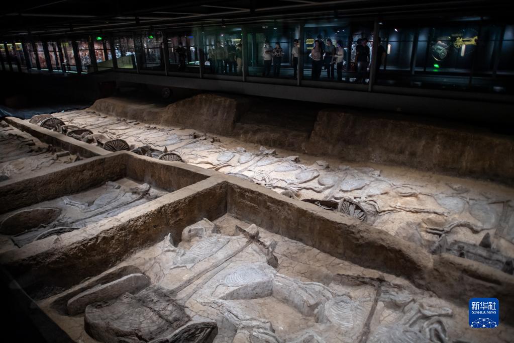 5月20日,在熊家冢國家考古遺址公園,游客在車(chē)馬坑前參觀(guān)。