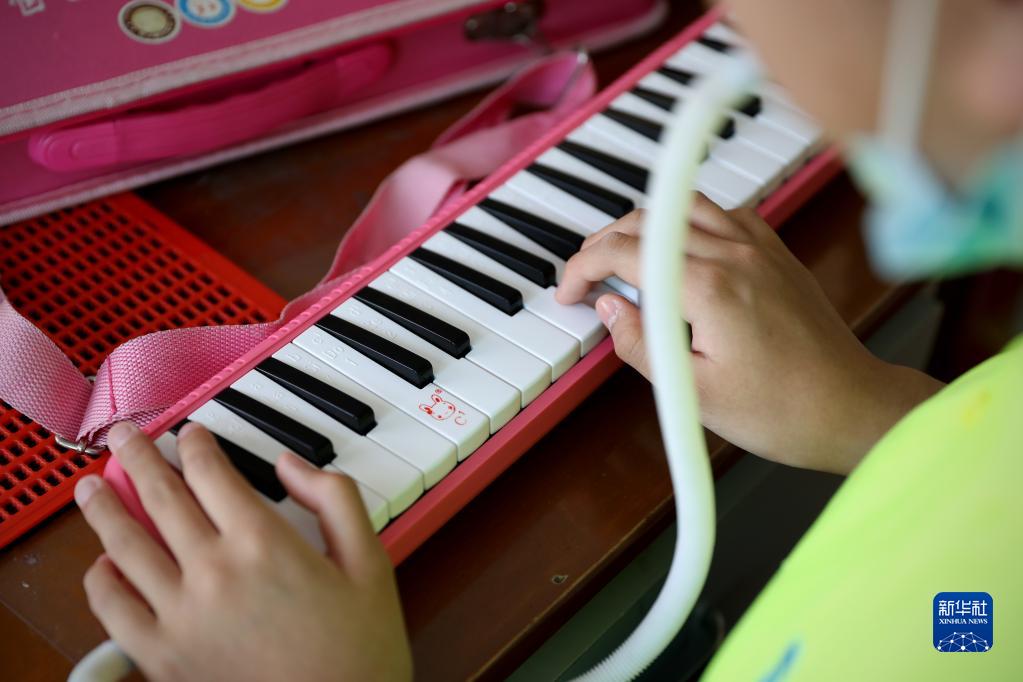 5月19日早上,莊巖的學(xué)生在進(jìn)行口風(fēng)琴演奏練習,這種普通的樂(lè )器對于視障孩子是很有挑戰性的。