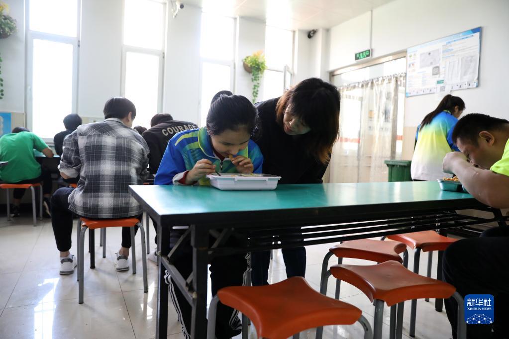 5月18日,午飯時(shí)間,莊巖在食堂和學(xué)生交流。