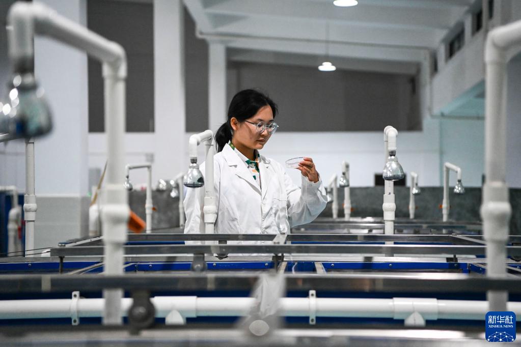 5月20日,技術(shù)人員在廣西大藤峽水利樞紐工程魚(yú)類(lèi)增殖放流站觀(guān)察待孵化的魚(yú)卵。
