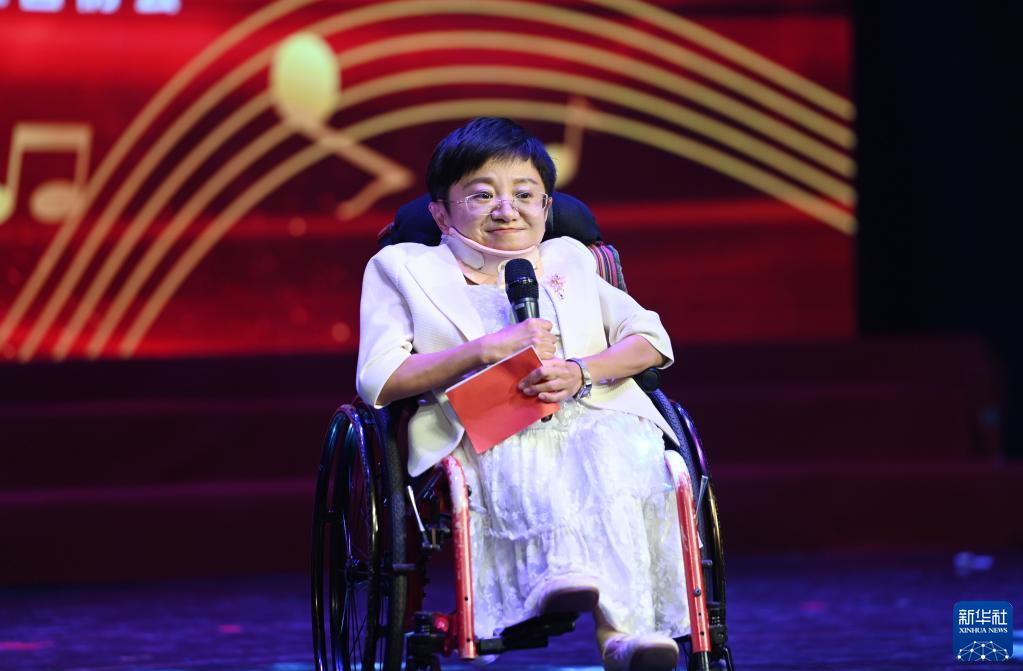 在天津市第三十三次全國助殘日活動(dòng)現場(chǎng),魏瑞紅在舞臺上發(fā)言(5月16日攝)。
