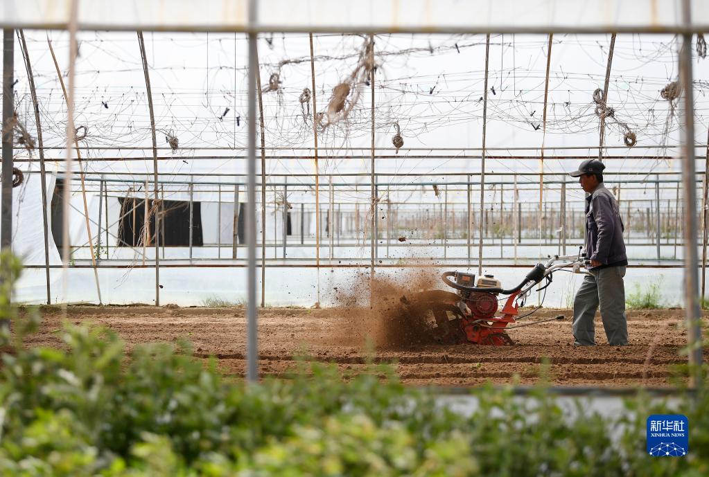 農戶(hù)在寧夏青銅峽市大壩鎮利民村蔬菜基地勞作(5月20日攝)。