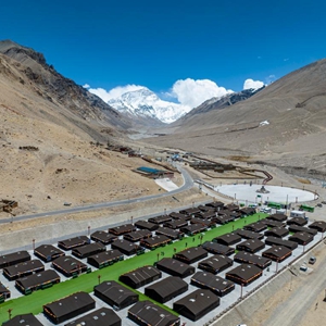 這是珠峰游客大本營(yíng)的帳篷旅館(5月20日攝,無(wú)人機照片)。