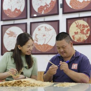 夫妻倆推行殘疾人就業(yè)項目,每年拿出收入的20%作為傳承經(jīng)費,包吃包住免費向殘疾人傳授蘆葦畫(huà)手工技藝。據介紹,公司至今累計培訓學(xué)員9000多人次,已發(fā)展成“國家級殘疾人非遺傳習基地”“國家級殘疾人文化創(chuàng )意產(chǎn)業(yè)基地”。