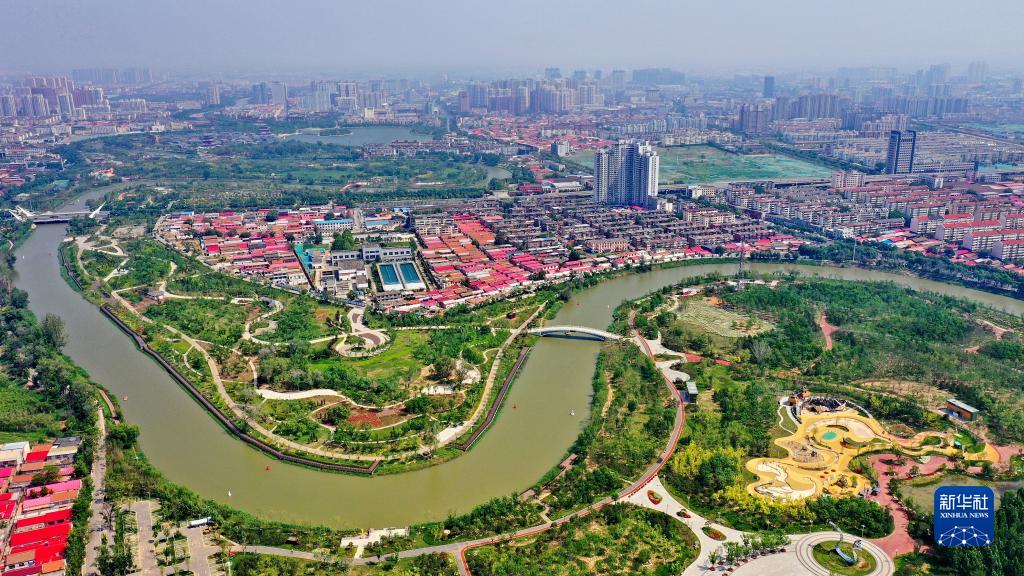 滄州市區境內的京杭大運河河道(5月16日攝,無(wú)人機照片)。