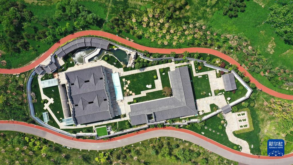 滄州市京杭大運河畔的滄曲書(shū)舍(5月16日攝,無(wú)人機照片)。