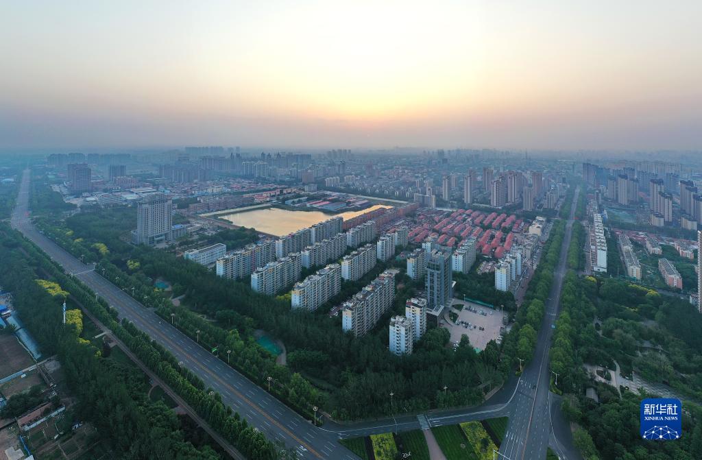 晨光中的滄州市區(5月16日攝,無(wú)人機照片)。