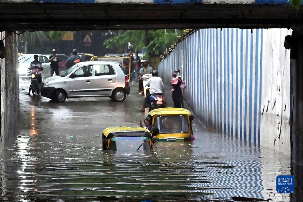 5月21日,在印度班加羅爾,車(chē)輛被困于一處漲水的涵洞。