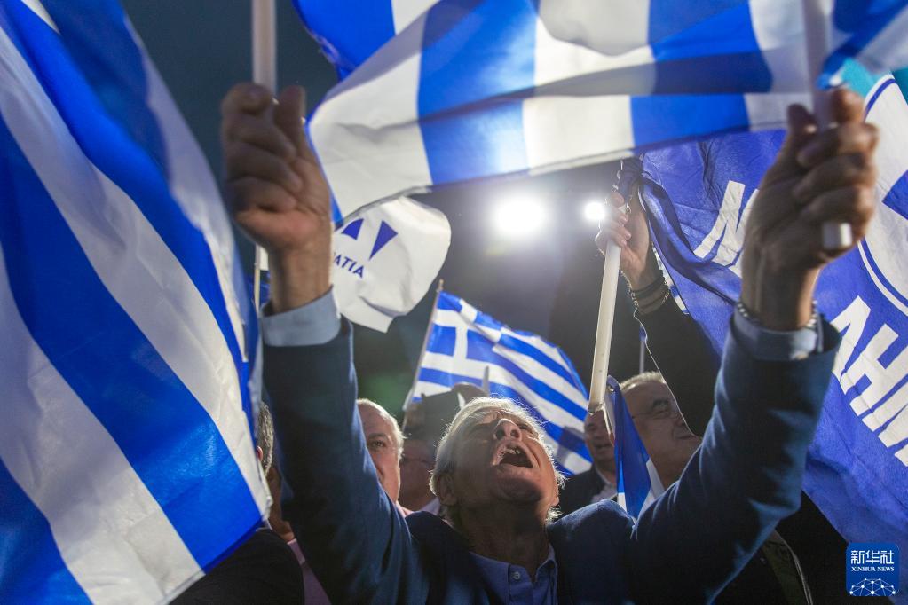 5月21日晚,新民主黨支持者在希臘雅典集會(huì )慶祝該黨派贏(yíng)得希臘大選。