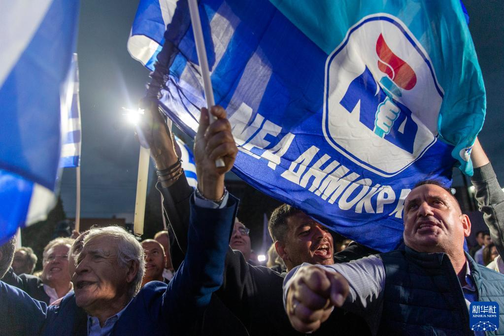 5月21日晚,新民主黨支持者在希臘雅典集會(huì )慶祝該黨派贏(yíng)得希臘大選。