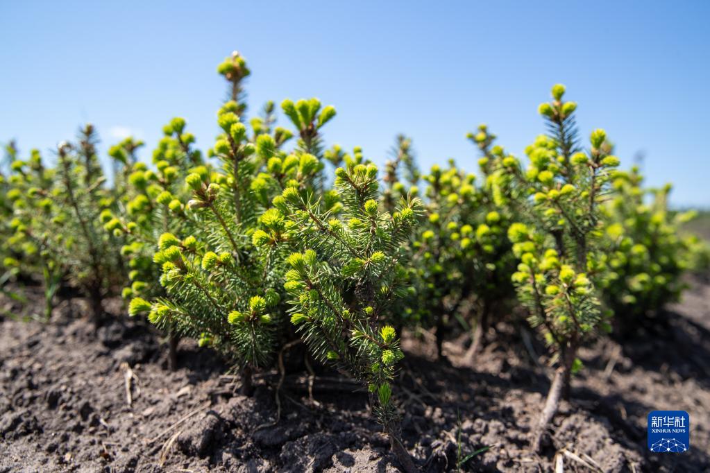 這是5月24日拍攝的伊春森工集團上甘嶺林業(yè)局公司溪水林場(chǎng)內栽種的紅松樹(shù)苗。