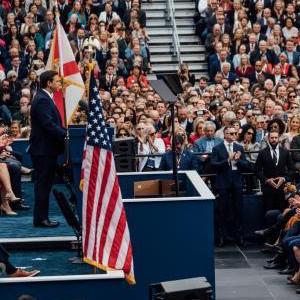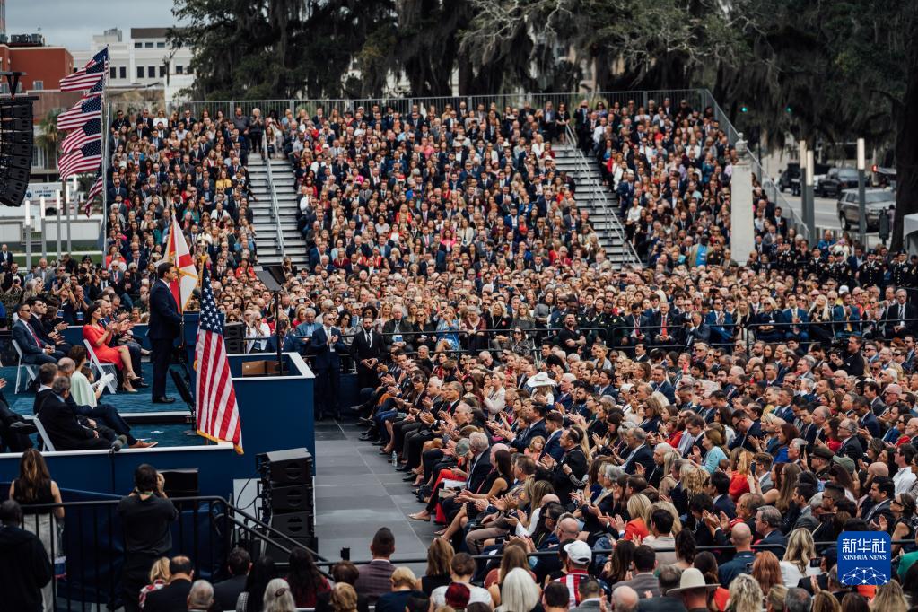 2023年1月3日,在美國佛羅里達州塔拉哈西,德桑蒂斯出席州長(cháng)就職儀式。