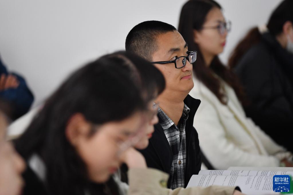 謝炎廷和同學(xué)在蘭州大學(xué)的教室里上課(5月10日攝)。新華社記者 陳斌 攝