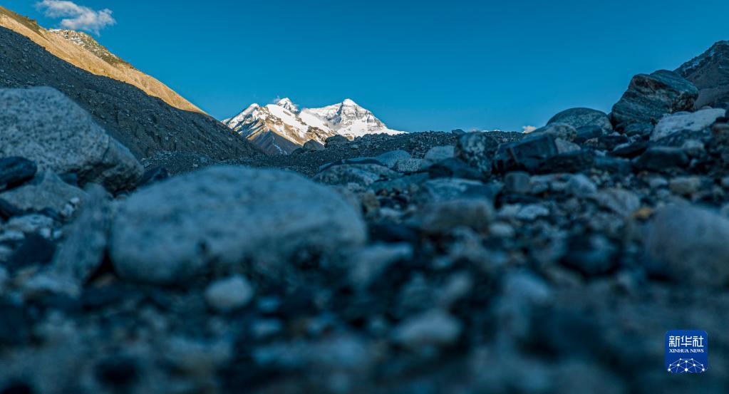 這是5月16日日落時(shí)分拍攝的珠穆朗瑪峰(無(wú)人機照片)。
