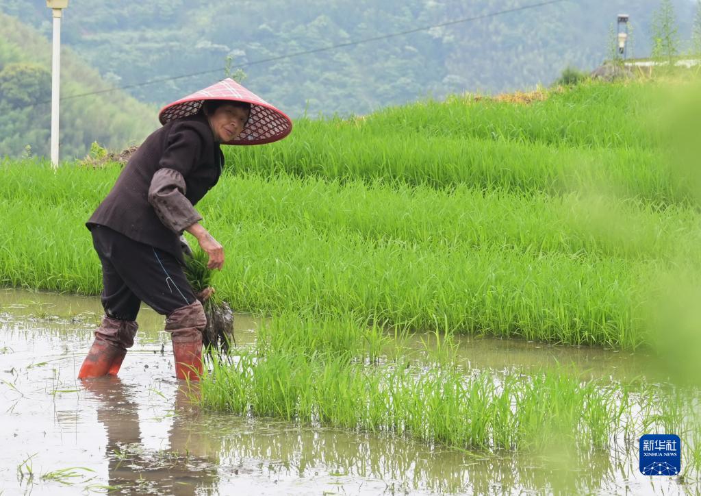 5月24日,尤溪縣聯(lián)合鎮連云村農民在秧苗田里扯秧苗。