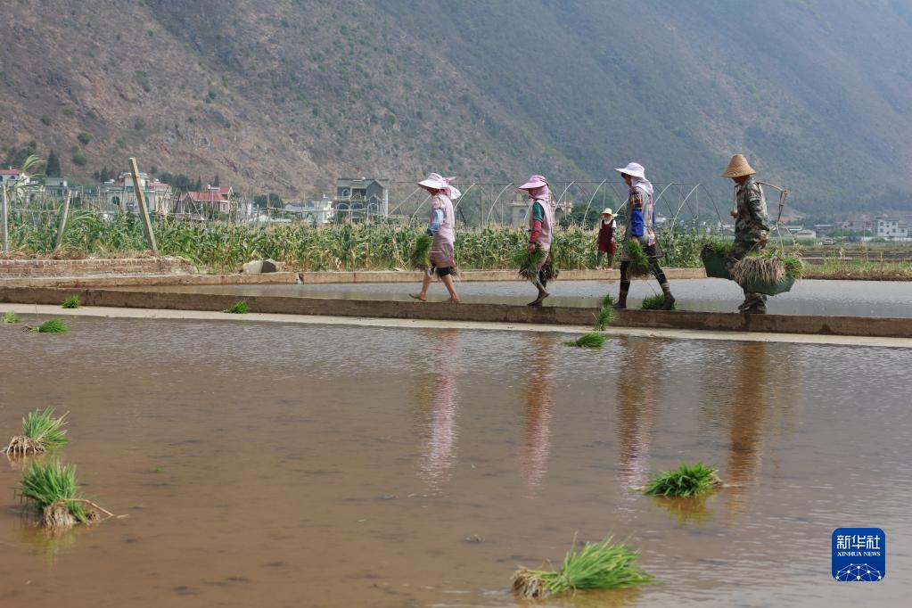 彌瀘灌區彌勒市竹園片區的農民準備插秧(5月9日攝)。新華社記者 劉詩(shī)平 攝