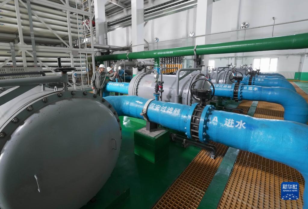 5月25日,工人在唐山市海港經(jīng)濟開(kāi)發(fā)區海水淡化項目投產(chǎn)的淡水生產(chǎn)車(chē)間工作。