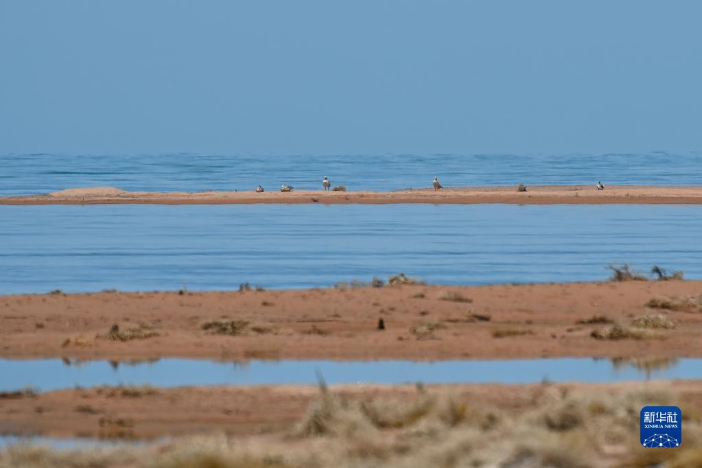 水鳥(niǎo)在位于新疆東昆侖庫木庫里盆地的阿雅克庫木湖畔休憩(5月23日攝)。