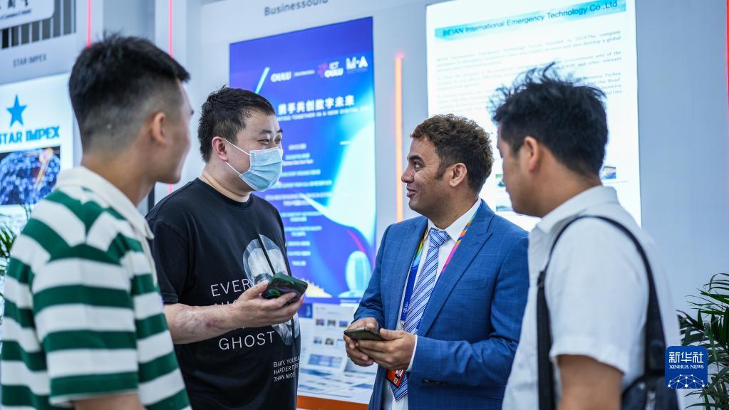 5月26日,參會(huì )者在數博會(huì )展館內與外商溝通。