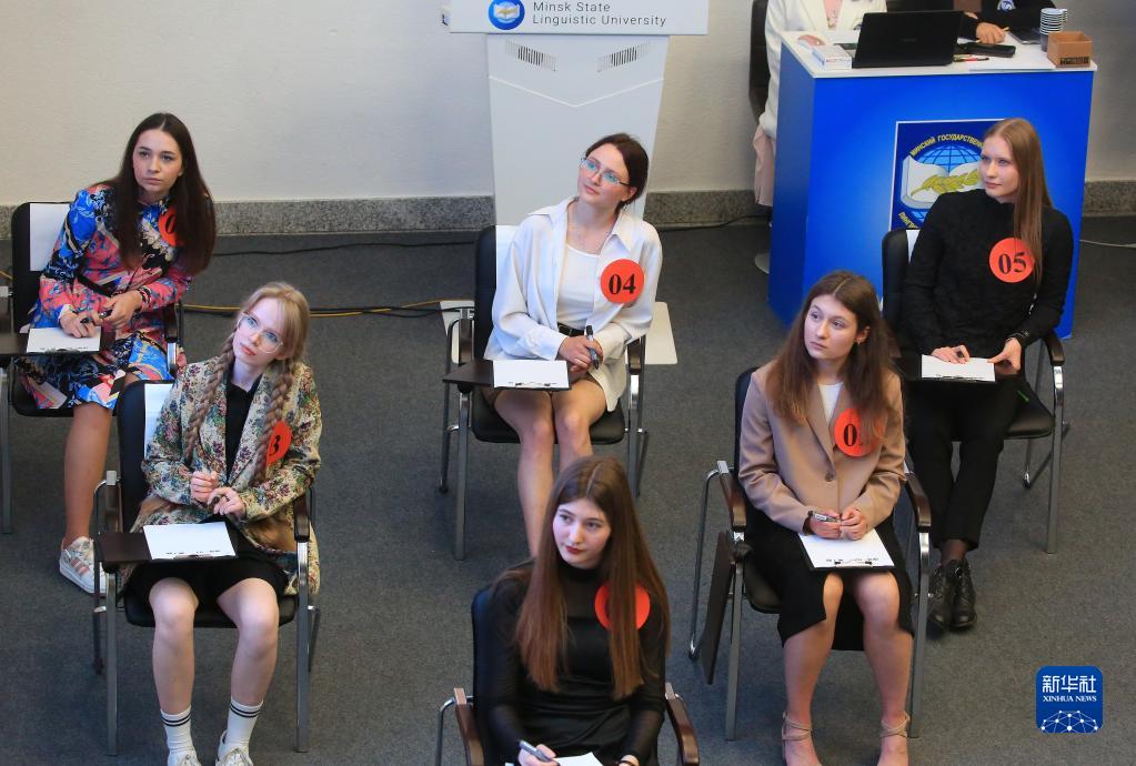 5月25日,選手在白俄羅斯明斯克國立語(yǔ)言大學(xué)參加“漢語(yǔ)橋”世界大學(xué)生中文比賽白俄羅斯賽區決賽。