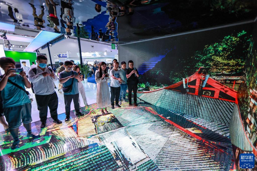 5月26日,參觀(guān)者在數博會(huì )現場(chǎng)觀(guān)看使用云計算技術(shù)制作的視頻。