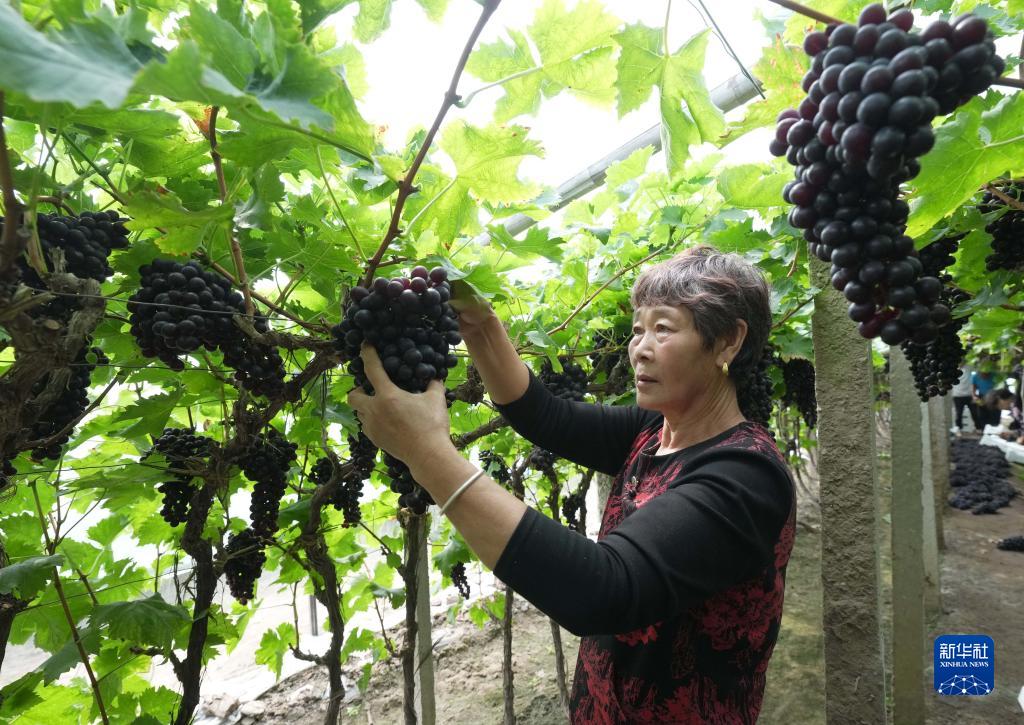 5月26日,唐山市海港經(jīng)濟開(kāi)發(fā)區王灘鎮趙灘村農民在大棚內采摘葡萄。