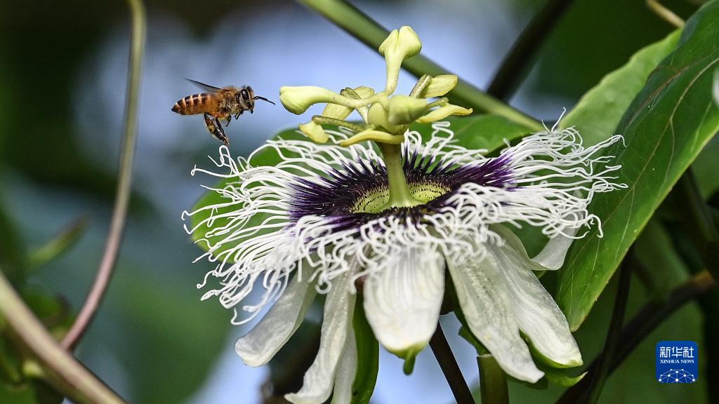 欽州市欽南區犀牛腳鎮烏雷村的黃金百香果園內百香果花盛開(kāi)(5月25日攝)。