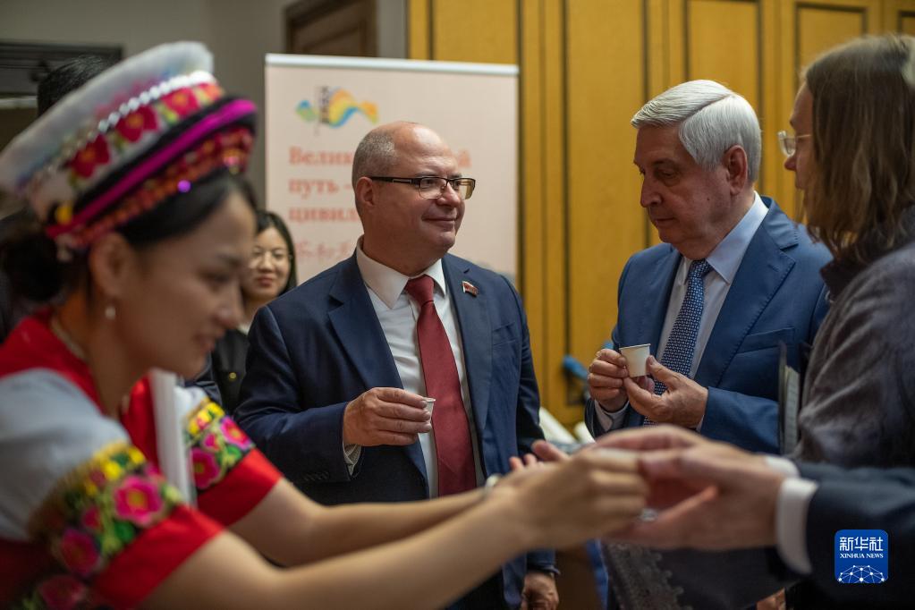 5月24日,在俄羅斯莫斯科的國家杜馬大樓,俄中友好協(xié)會(huì )主席、俄羅斯國家杜馬(議會(huì )下院)第一副主席伊萬(wàn)·梅利尼科夫(右二)與俄國家杜馬資產(chǎn)、土地與財產(chǎn)關(guān)系問(wèn)題委員會(huì )主席謝爾蓋·加夫里洛夫(右三)品味來(lái)自中國云南的茶。新華社記者 孟菁 攝