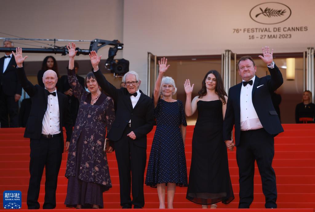 5月26日,在法國戛納舉行的第76屆戛納國際電影節上,英國導演肯·羅奇(左三)攜主創(chuàng )團隊亮相影片《老橡樹(shù)》首映禮紅毯。