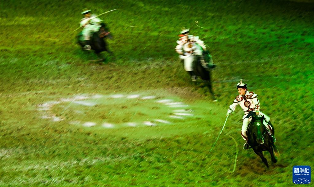 當日,由內蒙古民族藝術(shù)劇院出品的2023年大型馬舞劇《千古馬頌》在呼和浩特上演。該劇以馬術(shù)表演為主,綜合運用了舞蹈、器樂(lè )、雜技等藝術(shù)元素,融合了現代高科技舞臺技術(shù),以全新藝術(shù)形式生動(dòng)演繹了人與馬相遇、相識、相伴、不離不棄、生死與共的情感歷程,體現了人、馬與自然和諧共存的精神。